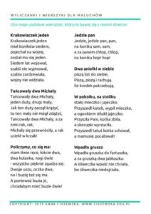 Szukamy wierszyka w którym często występuje jakiś wyraz (np. „Tańcowała igła z nitką” – Brzechwy. I teraz prosimy dziecko, żeby na dźwięk słowa „igła”- klasnęły, przy „nitce” mają podskoczyć itd. Można też zmienić tę zabawę – dając dziecku patyczek (igła) i nitkę. Ma podnieść do góry rękę z odpowiednim przedmiotem, gdy go usłyszy. Weźcie zestaw ulubionych wierszy dla maluchów i pobawcie się w ten sposób – a poćwiczycie koncentrację, refleks i zasób słownictwa dziecka!